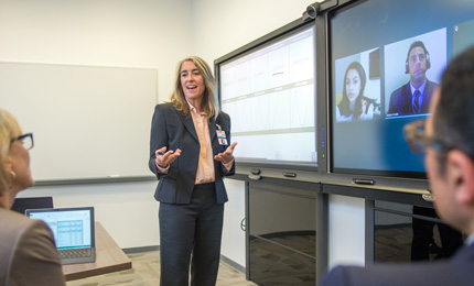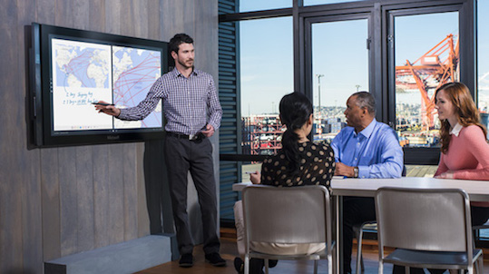 Focus on the things you're doing together, even when you’re far apart, with integrated real-time co-authoring, desktop sharing, application sharing, and PowerPoint presentations.