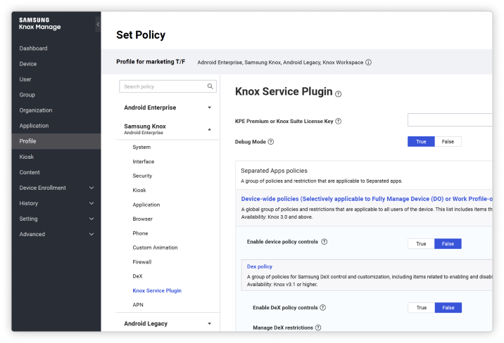 "overview": "Samsung’s Knox Platform for Enterprise (KPE) brings defense-grade security on the most popular consumer devices to all enterprises.\nhttps://www.samsungknox.com/en/knox-platform/knox-certifications \n\nThe Knox Platform provides best-in-class hardware-based security, policy management, and compliance capabilities beyond the standard features commonplace in the mobile device market. The Knox Platform is the cornerstone of a strong mobile security strategy supporting a wide variety of Samsung devices.",